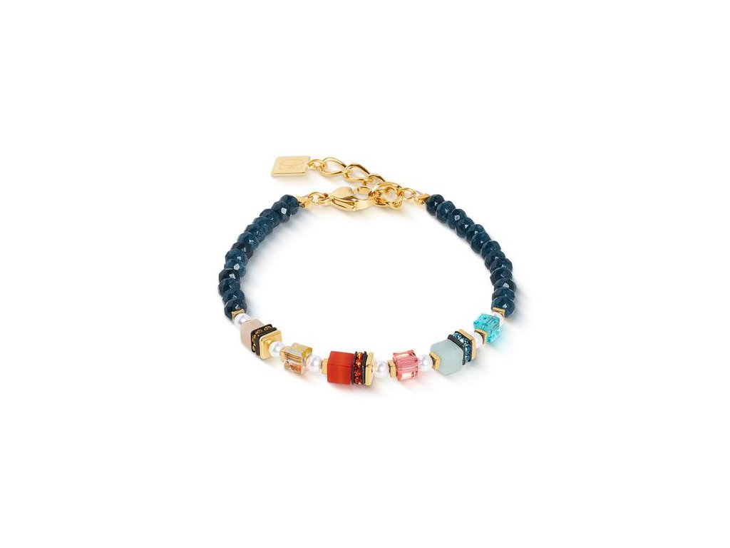 Nadčasově krásný pozlacený náramek z kolekce GeoCUBE® s různě barevnými krystaly, Swarovski® křišťály a štrasové rondelky, ocel .Každý šperk objednaný u COEUR DE LION vám dodáme v prémiovém designovém pouzdře a s certifikátem pravosti. Zapínání je na karabinu z oceli s nastavitelnou délkou.Doplňkové parametry