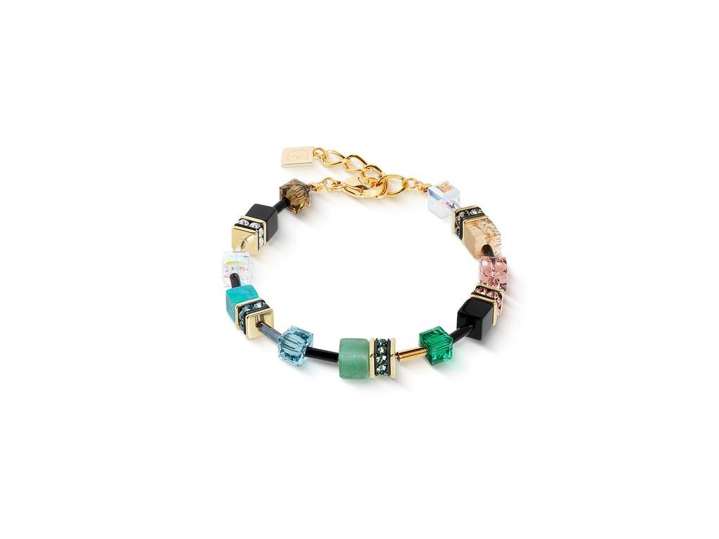 Nadčasově krásný pozlacený náramek z kolekce GeoCUBE® s různě barevnými krystaly, Swarovski® křišťály a štrasové rondelky, ocel. Každý šperk objednaný u COEUR DE LION vám dodáme v prémiovém designovém pouzdře a s certifikátem pravosti. Zapínání je na karabinu z oceli s nastavitelnou délkou.Doplňkové parametry