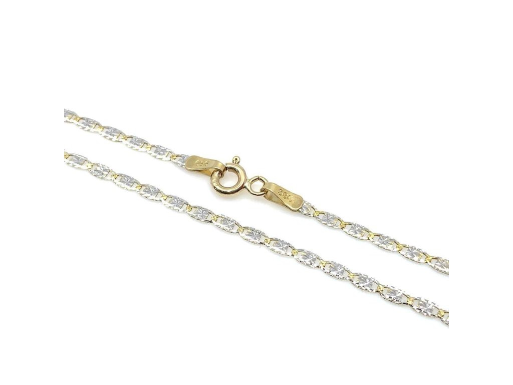 Slušivý dámský řetízek na nohu ze žlutého a bílého 14 karátového zlata (585/1000) potěší každou ženu. Řetízek má lesklou povrchovou úpravu a má očka hustě propletená do spirály vzoru valentino. Zapínání je na skákací očko. Všechno naše zboží je označeno puncovními značkami uznanými Puncovním úřadem ČR.Doplňkové parametry