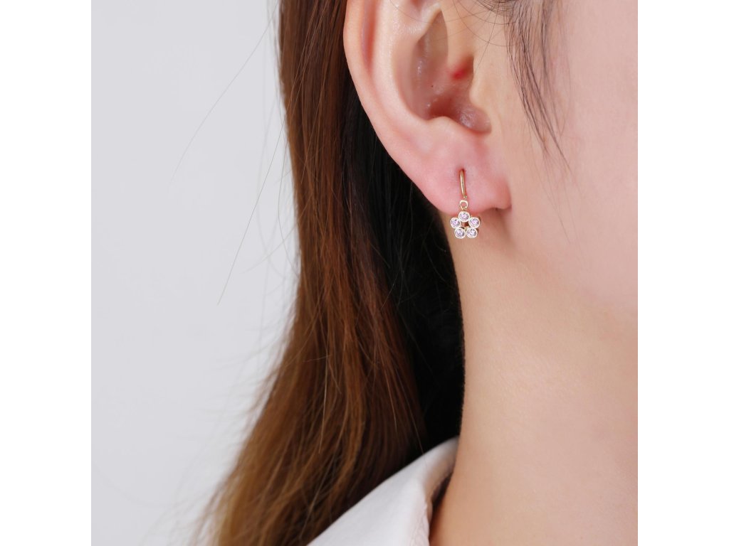 Krásné dětské náušnice ze žlutého zlata (585/1000) ve tvaru kytičky, které jsou zdobené růžovými zirkony. Zapínání je na brizuru. Všechno naše zboží je označeno puncovními značkami uznanými Puncovním úřadem ČR.Doplňkové parametry