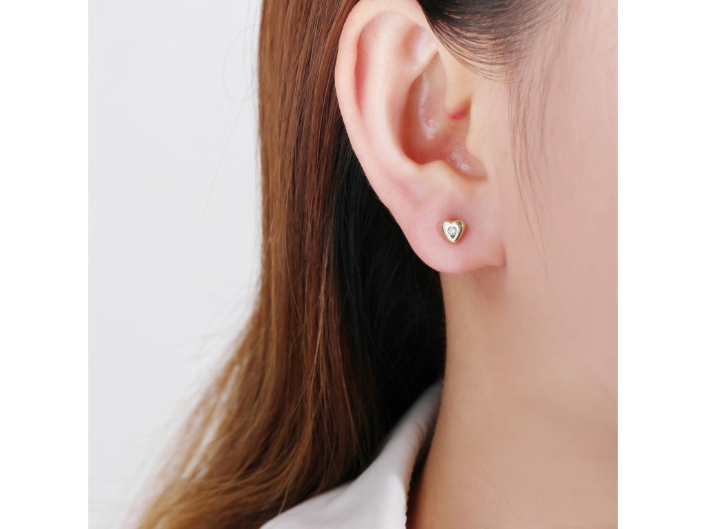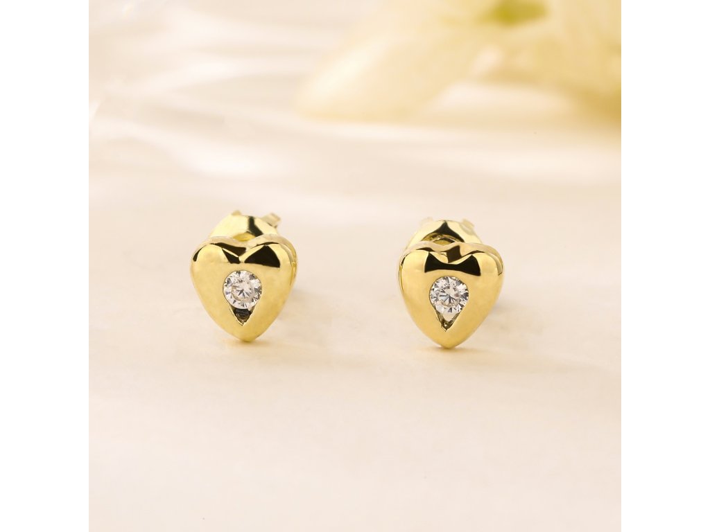Okouzlující náušnice ze žlutého zlata (585/1000) se zapínáním na šroubek, které jsou ve tvaru srdíčka zdobené vsazeným, bílým zirkonem. Všechno naše zboží je označeno puncovními značkami uznanými Puncovním úřadem ČR.Doplňkové parametry