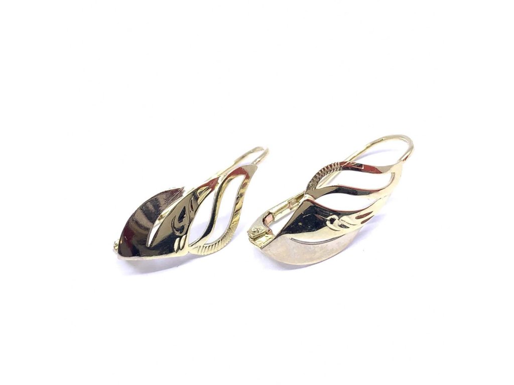 Jedinečné náušnice v kombinaci žlutého a rose zlata (585/1000). Náušnice mají oválný tvar, který je hladký, místy zdobený broušením. Zapínání je na klapku. Všechno naše zboží je označeno puncovními značkami, které jsou uznané Puncovním úřadem ČR.Doplňkové parametry