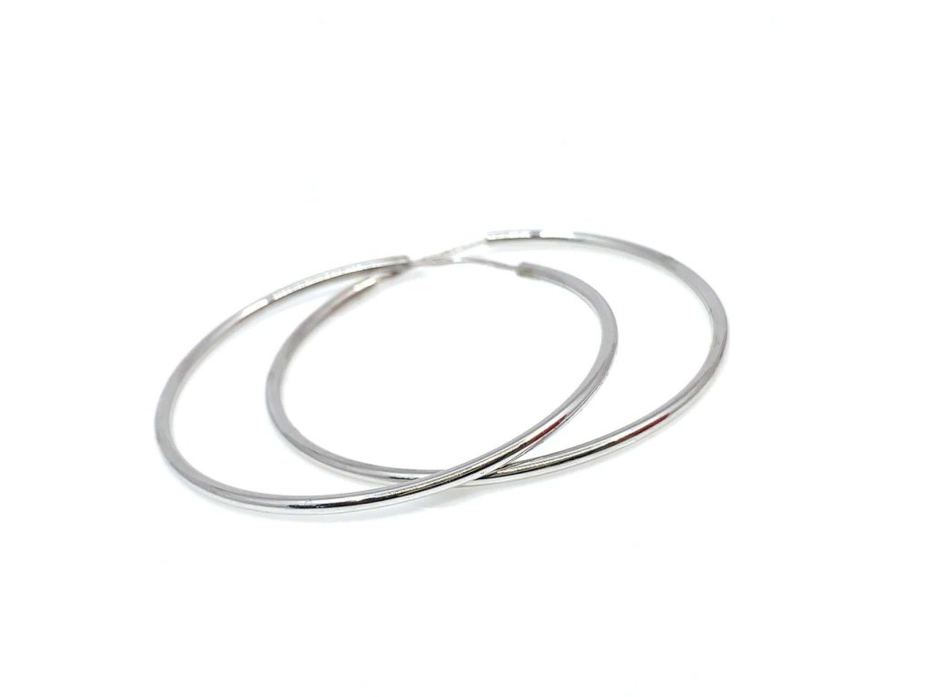 Moderní náušnice z bílého zlata (585/1000). Kruhové náušnice mají hladký, lesklý povrch. Povrchová úprava rhodiem zajistí šperku vyšší lesk a odolnost.Všechno naše zboží je označeno puncovními značkami uznanými Puncovním úřadem ČR.Doplňkové parametry
