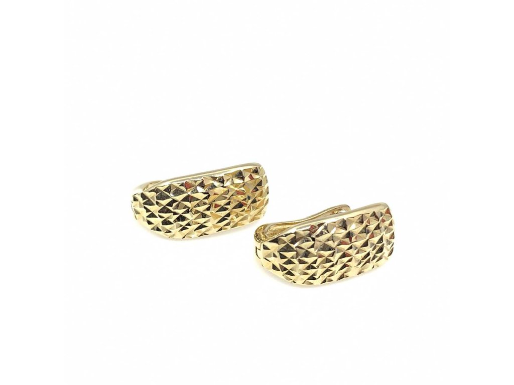 Krásné náušnice ze žlutého zlata (585/1000), které mají obdélníkový tvar jsou zdobené broušením. Zapínání je francouzské. Všechno naše zboží je označeno puncovními značkami uznanými Puncovním úřadem ČR.Doplňkové parametry