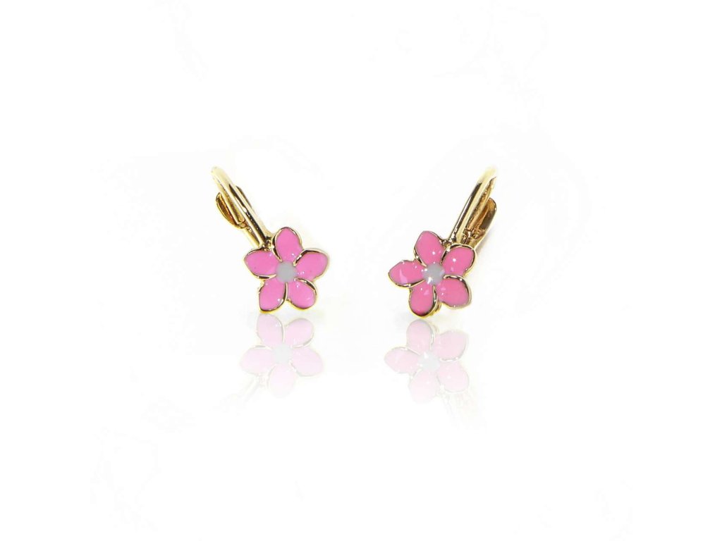 Jemné dětské nášnice ze žlutého zlata (585/1000). Mají tvar kytičky, která je odzobena růžovým a bílým emailem. Náušnice se zapínají na klapku. Všechno naše zboží je označeno puncovními značkami uznanými Puncovním úřadem ČR.Doplňkové parametry