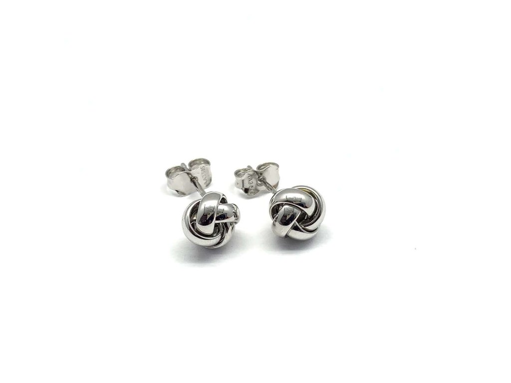Krásné dámské náušnice z bílého zlata (585/1000) potěší každou ženu. Mají tvar uzlíku a jsou hladké a lesklé. Zapínání je na puzetu. Povrchová úprava rhodiem zajistí šperku lesk a odolnost. Všechno naše zboží je označeno puncovními značkami uznanými Puncovním úřadem ČR. Rozměr šperku: 8x8mm.Doplňkové parametry