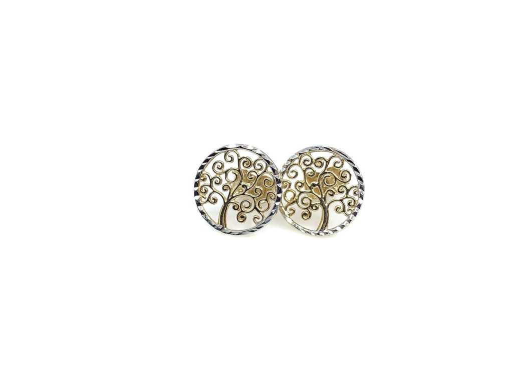 Krásné dámské náušnice v kombinaci žlutého i bílého zlata (585/1000). Náušnice mají tvar hladkého stromu žvota v kruhu, který je zdobený broušením. Zapínání je na puzetu. Všechno naše zboží je označeno puncovními značkami uznanými Puncovním úřadem ČR.Doplňkové parametry