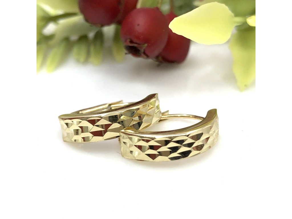 Bohatě ryté náušnice ze žlutého zlata (585/1000) v obloukovitém tvaru Vám budou opravdu slušet. Zapínání je na klapku. Všechno naše zboží je označeno puncovními značkami uznanými Puncovním úřadem ČR.Doplňkové parametry
