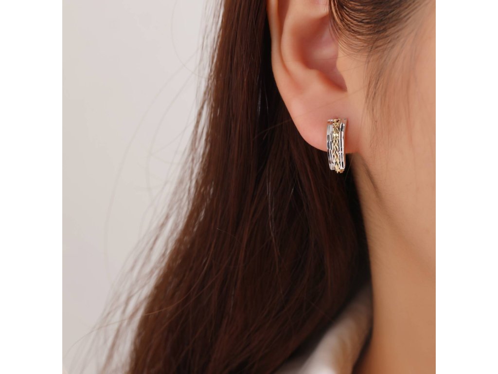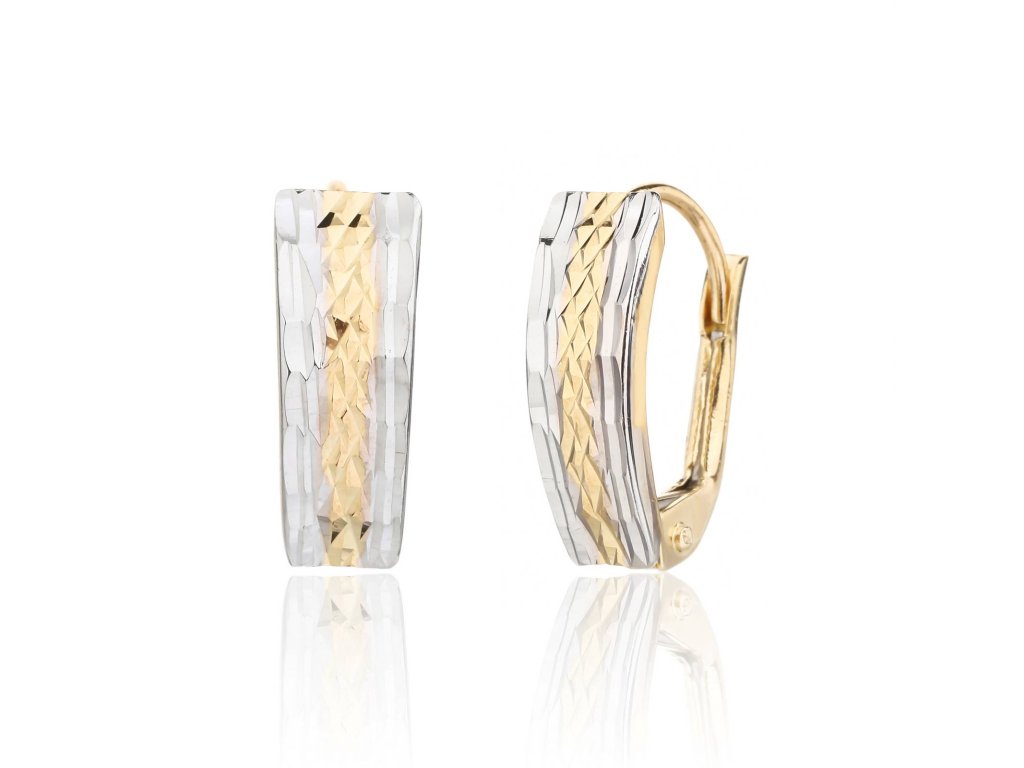 Krásné půlkruhové náušnice ze žlutého zlata (585/1000) v lesklém rytém provedení a proužky bílého zlata. Zapínání je na klapku. Všechno naše zboží je označeno puncovními značkami uznanými Puncovním úřadem ČR.Doplňkové parametry