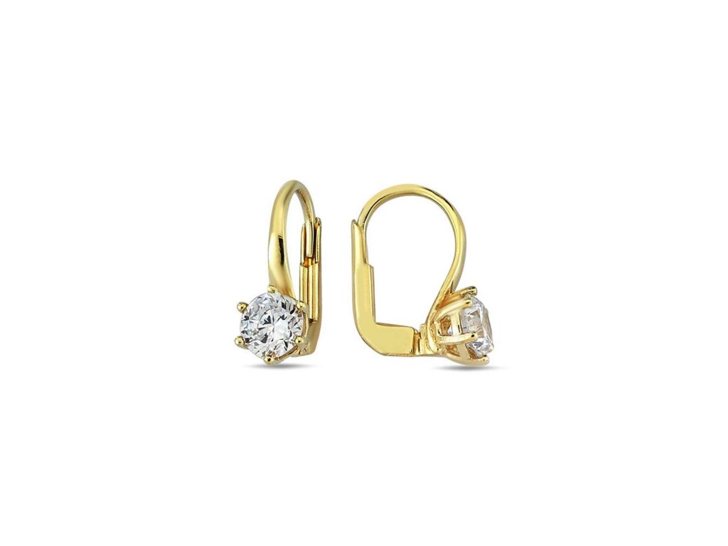Moderní dámské náušnice ze žlutého zlata (585/1000). Mají dominantní kulatý čirý zirkon, který je osazen do krapen. Náušnice se zapínají na klapku. Všechno naše zboží je označeno puncovními značkami uznanými Puncovním úřadem ČR.Doplňkové parametry