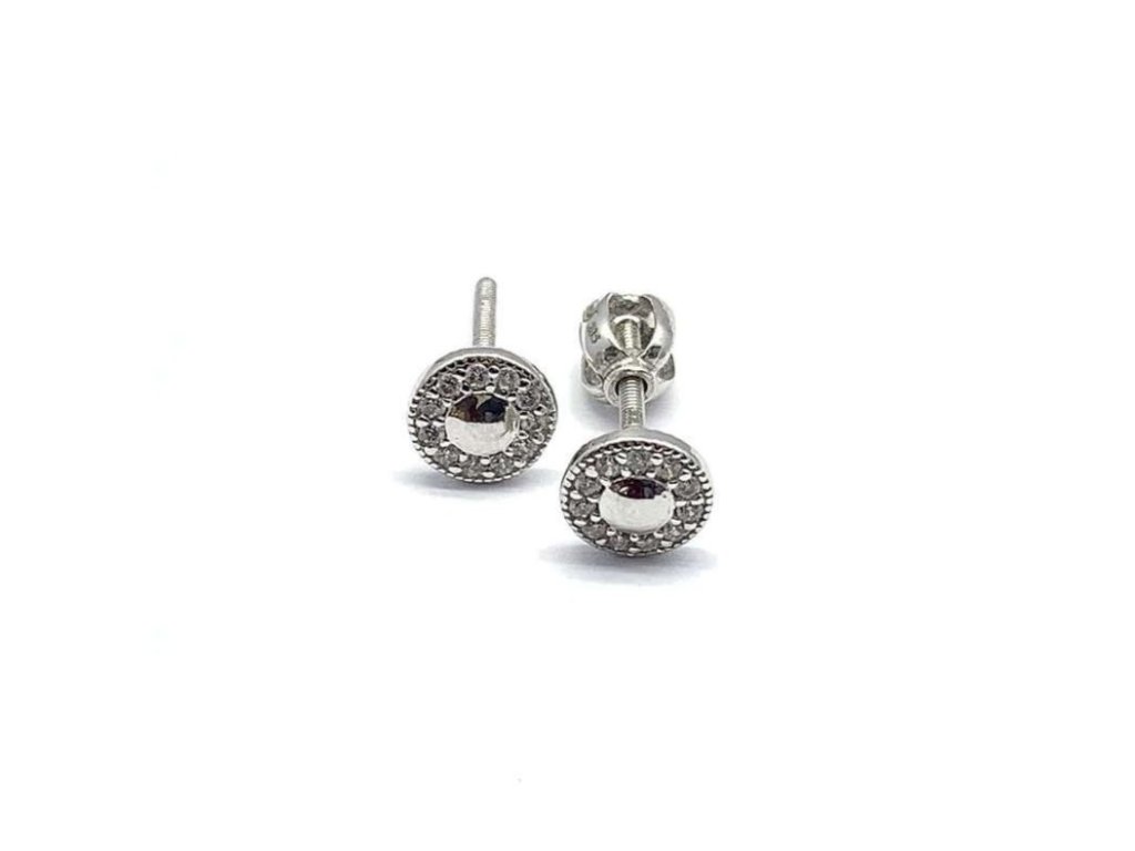 Krásné dámské náušnice z bílého zlata (585/1000). Mají tvar kolečka, které je po obvodu osázené malými bílými zirkony. Zapínání je na šroubek. Povrchová úprava rhodiem zajistí šperku vyšší lesk a odolnost. Všechno naše zboží je označeno puncovními značkami uznanými Puncovním úřadem ČR.Doplňkové parametry