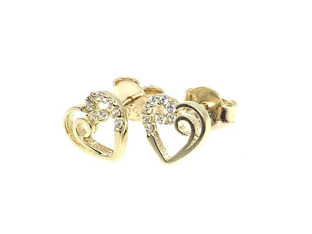Elegantní dámské náušnice ze žlutého zlata (585/1000). Náušnice mají tvar hladkého srdce, které je ozdobené drobnými bílými zirkony. Zapínání je na puzetu. Všechno naše zboží je označeno puncovními značkami uznanými Puncovním úřadem ČR.Doplňkové parametry