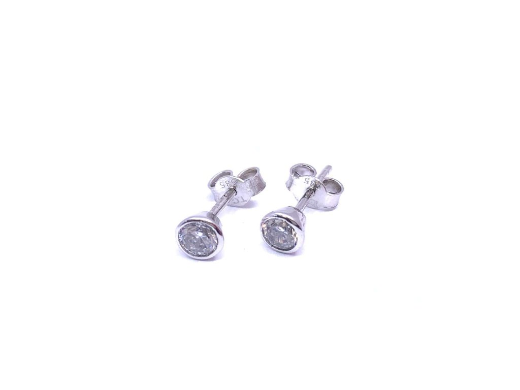 Krásné dámské náušnice z bílého zlata (585/1000). Náušnice mají zapínání na puzetu a vsazený drobný zirkon v hladké obrubě. Povrchová úprava rhodiem zajistí šperku lesk a odolnost. Všechno naše zboží je označeno puncovními značkami uznanými Puncovním úřadem ČR.Doplňkové parametry