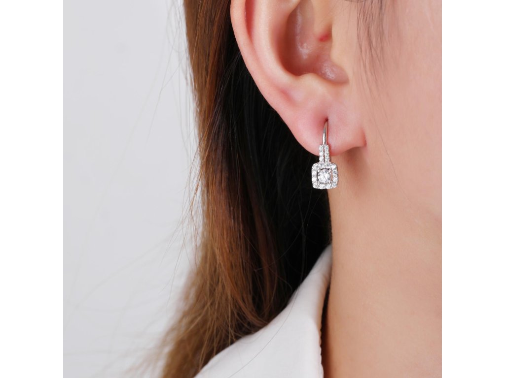Krásné dámské náušnice z bílého zlata (585/1000). Náušnice mají tvar čtverce, který tvoří jeden centrální bílý zirkon a je ozdobený malými bílými zirkony. Povrchová úprava rhodium, šperku zajistí větší odolnost a lesk. Zapínání je na klapku. Všechno naše zboží je označeno puncovními značkami uznanými Puncovním úřadem ČR.Doplňkové parametry