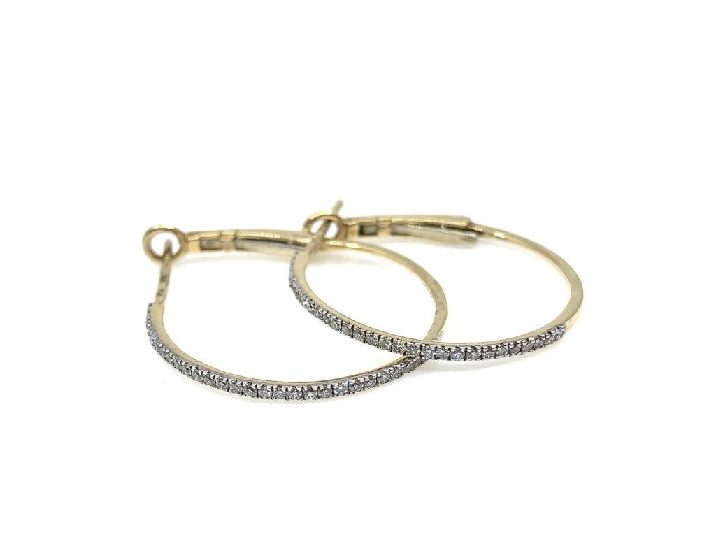 Okouzlující dámské náušnice ze žlutého zlata (585/1000). Elegantní, krásné kruhové náušnice, které jsou zdobené drobnými brilianty. Ke každému šperku s briliantem obdržíte certifikát o pravosti kamene. Specifikace kamene: 58x briliant H/VS-Si 0,32ct. Všechno naše zboží je označeno puncovními značkami uznanými Puncovním úřadem ČR.Doplňkové parametry