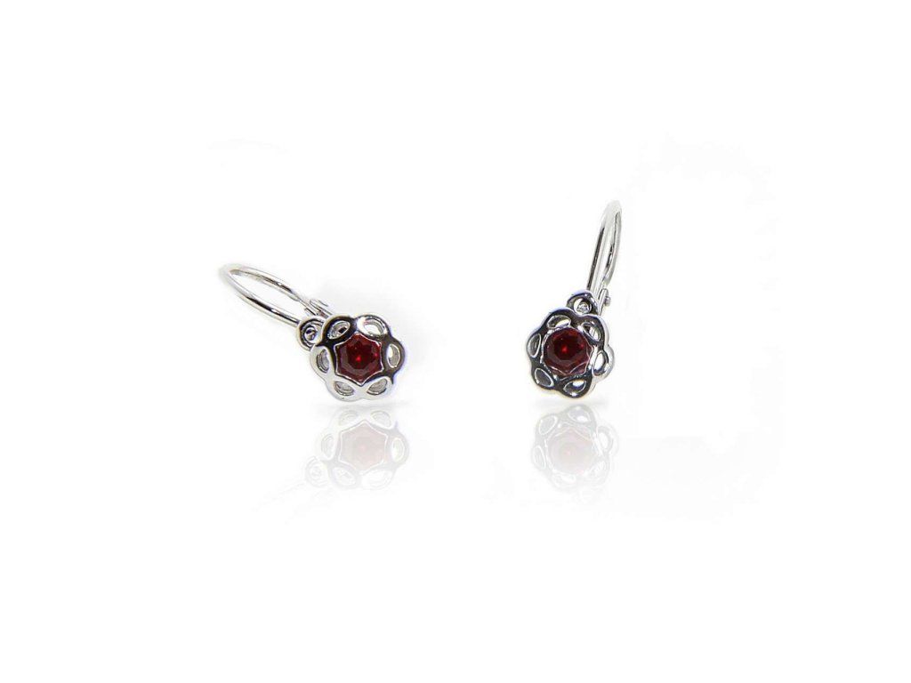 Dětské náušnice z bílého zlata (585/1000) budou slušet každé malé slečně. Mají tvar kytky, která je z jednoho centrálního červeného zirkonu a okvětní lístky jsou z hladkého bílého zlata. Náušnice se zapínají na brizuru. Povrchová úprava rhodiem zajistí šperku lesk a odolnost. Všechno naše zboží je označeno puncovními značkami uznanými Puncovním úřadem ČR.Doplňkové parametry