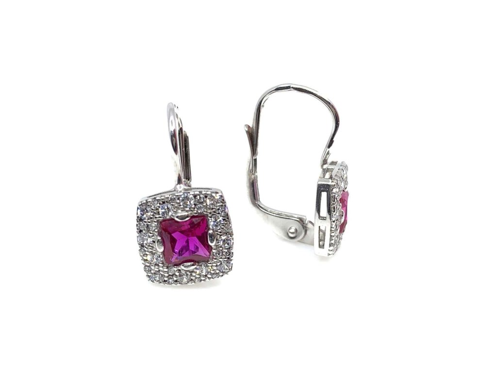 Okouzlující dámské náušnice z bílého zlata (585/1000). Mají čtvercový tvar, který má uprostřed jeden centrální červený zirkon. Po obvodu jsou malé bílé zirkony. Zapínání je na klapku. Povrchová úprava rhodiem zajistí šperku vyšší lesk a odolnost. Všechno naše zboží je označeno puncovními značkami uznanými Puncovním úřadem ČR.Doplňkové parametry