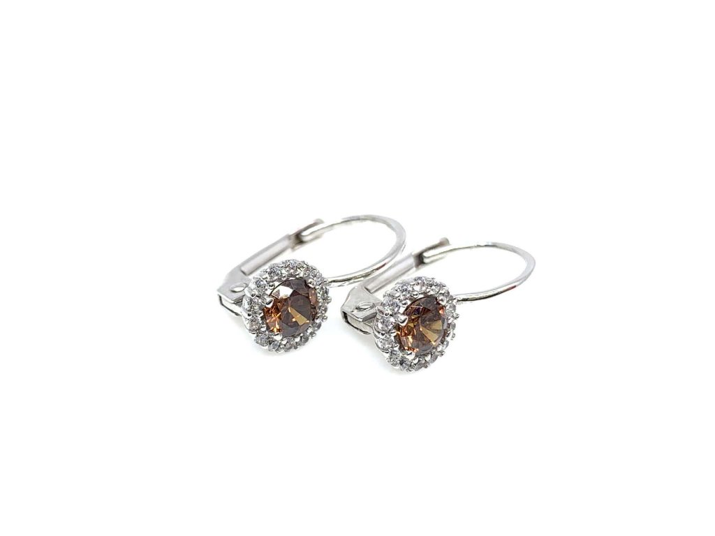 Elegantní dámské náušnice z bílého zlata (585/1000). Mají kulatý tvar, který je ozdoben centrálním hnědým zirkonem, která je doplněná drobnými zirkony. Zapínají se na klapku. Povrchová úprava rhodiem zajistí šperku vyšší lesk a odolnost. Všechno naše zboží je označeno puncovními značkami uznanými Puncovním úřadem ČR.Doplňkové parametry