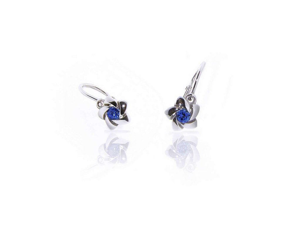 Dětské náušnice z bílého zlata (585/1000) budou slušet každé malé slečně. Mají tvar kytky, která je z jednoho centrálního modrého zirkonu a okvětní lístky jsou z hladkého bílého zlata. Náušnice se zapínají na brizuru. Povrchová úprava rhodiem zajistí šperku lesk a odolnost. Všechno naše zboží je označeno puncovními značkami uznanými Puncovním úřadem ČR.Doplňkové parametry