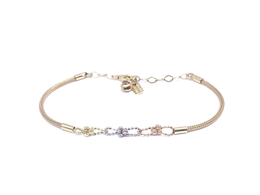 Luxusní náramek ze žlutého zlata (585/1000). Tímto šperkem určítě zazáříte. Krásný pletený řetízek je uprostřed doplněn ozdobou z ozdobných oček a kuliček z různobarevného zlata. Všechno naše zboží je označeno puncovními značkami, které jsou uznány Puncovním úřadem ČR.Doplňkové parametry