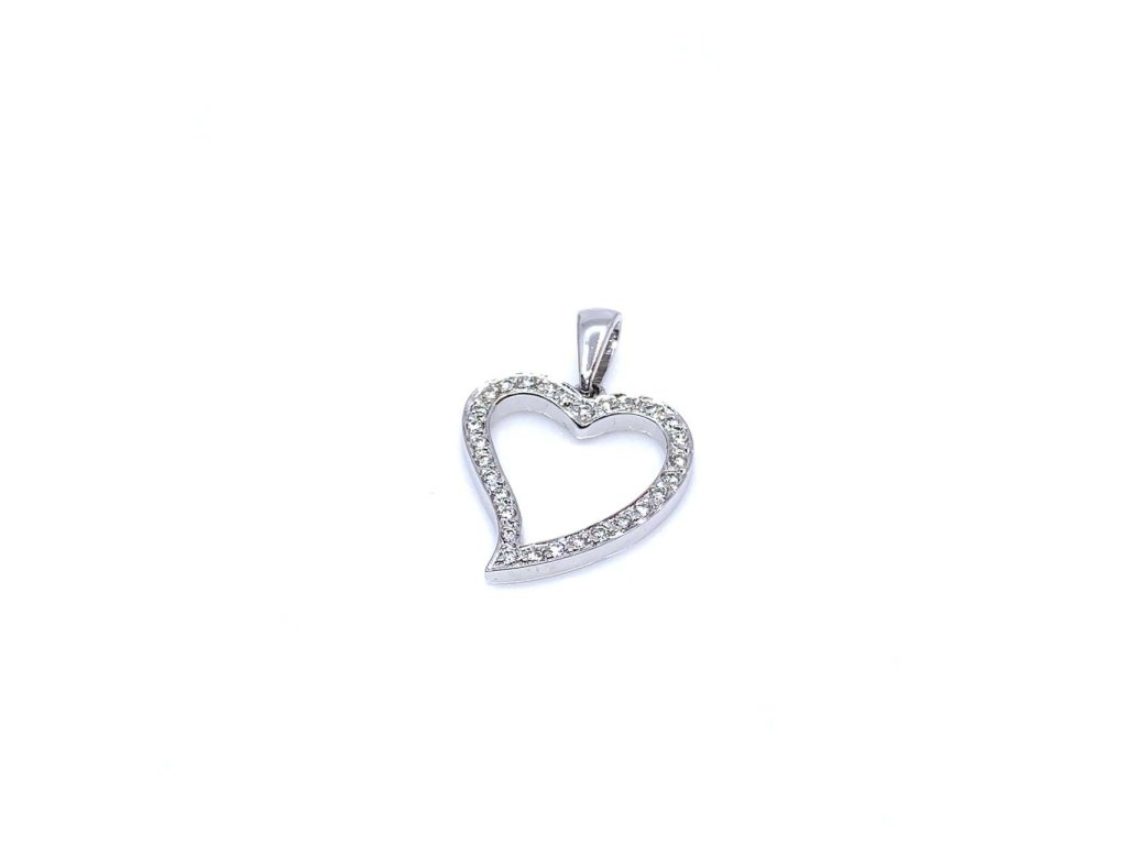 Luxusní přívěs z bílého zlata (585/1000) ve tvaru obrysu srdce se zářivými vsazenými brilianty po celém obvodu šperku. Povrchová úprava rhodium zajišťuje šperku vysoký lek a odolnost.Ke každému šperku s briliantem obdržíte certifikát o pravosti kamene. Všechno naše zboží je označeno puncovními značkami uznanými Puncovním úřadem ČR. Specifikace kamene: brilianty H/Si 0,150ct ( 29x 0,05ct )Doplňkové parametry