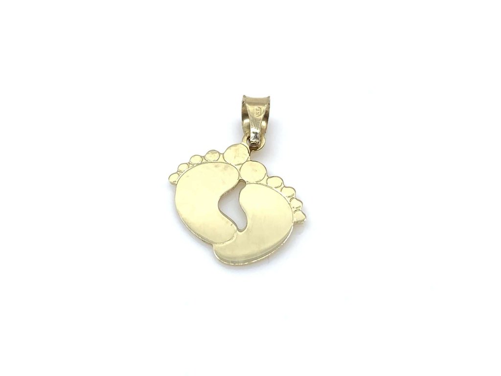 Stylový přívěsek ze žlutého zlata (585/1000) je vhodným dárkem při narození miminka. Přívěsek má tvar dětských nožiček. Všechno naše zboží je označeno puncovními značkami uznanými Puncovním úřadem ČR.Doplňkové parametry