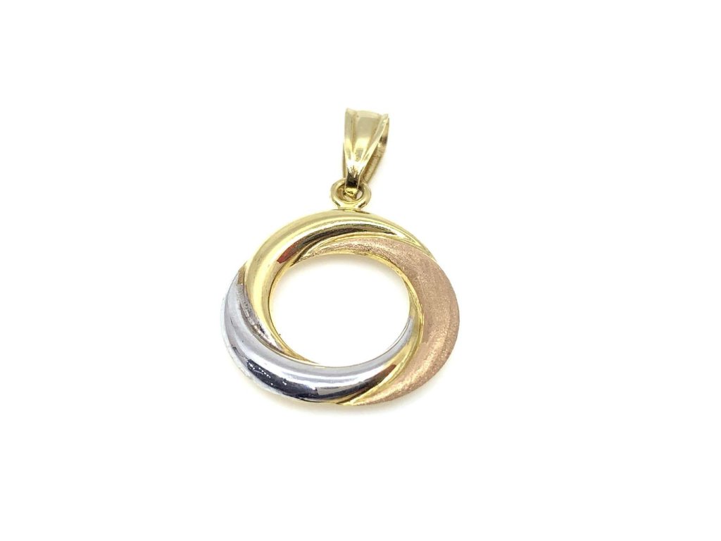 Překrásný dámský přívěsek ze žlutého zlata (585/1000) kulatého tvaru, který je zdobený bílým a růžovým zlatem. Všechno naše zboží je označeno puncovními značkami uznanými Puncovním úřadem ČR.Doplňkové parametry