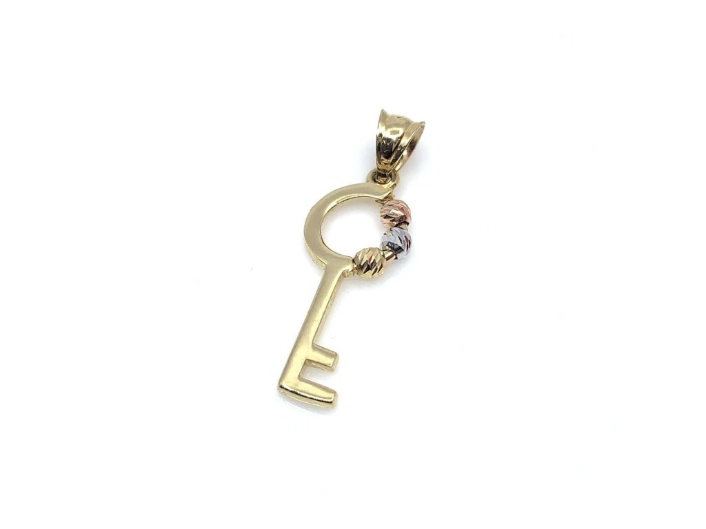 Kouzelný přívěsek ze žlutého zlata (585/1000) je ve tvaru klíče, který je zdobený třemi korálky ze zlata. Všechno naše zboží je označeno puncovními značkami uznanými Puncovním úřadem ČR.Doplňkové parametry