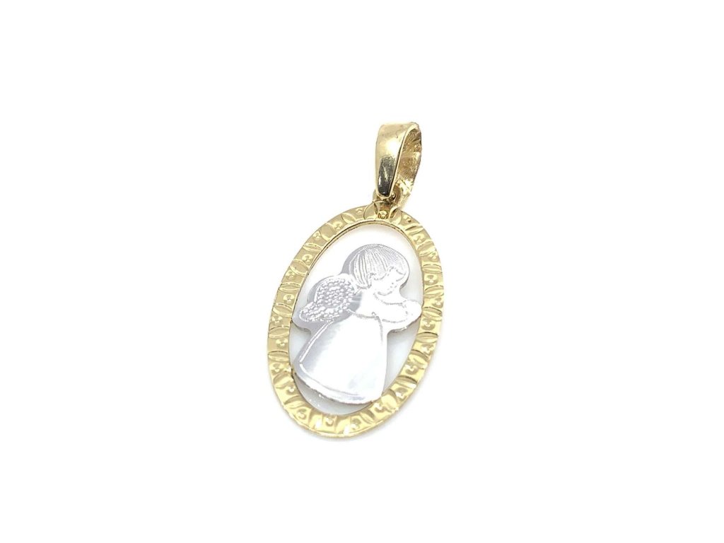 Něžný dámský přívěsek z kombinace žlutého a bílého zlata (585/1000) s andělem z bílého zlata a oválným zdobeným rámečkem ze žlutého zlata. Všechno naše zboží je označeno puncovními značkami uznanými Puncovním úřadem ČR.Doplňkové parametry