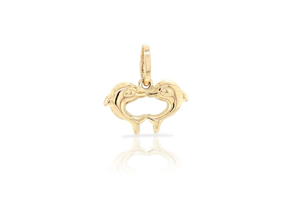 Krásný dámský přívěsek ze žlutého zlata (585/1000) ve tvaru dvou delfínů spojených tak, že vytvářejí tvar srdce. Romantický šperk pro neobyčejnou ženu. Všechno naše zboží je označeno puncovními značkami uznanými Puncovním úřadem ČR.Doplňkové parametry