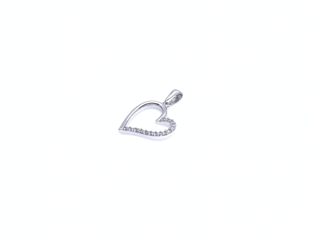 Elegantní přívěsek z bílého zlata (585/1000). Má tvar srdce, které je částečně po obvodu osázen bílými zikrony. Povrchová úprava rhodiem zajistí šperku vyšší lesk a odolnost. Všechno naše zboží je označeno puncovními značkami uznanými Puncovním úřadem ČR.Doplňkové parametry