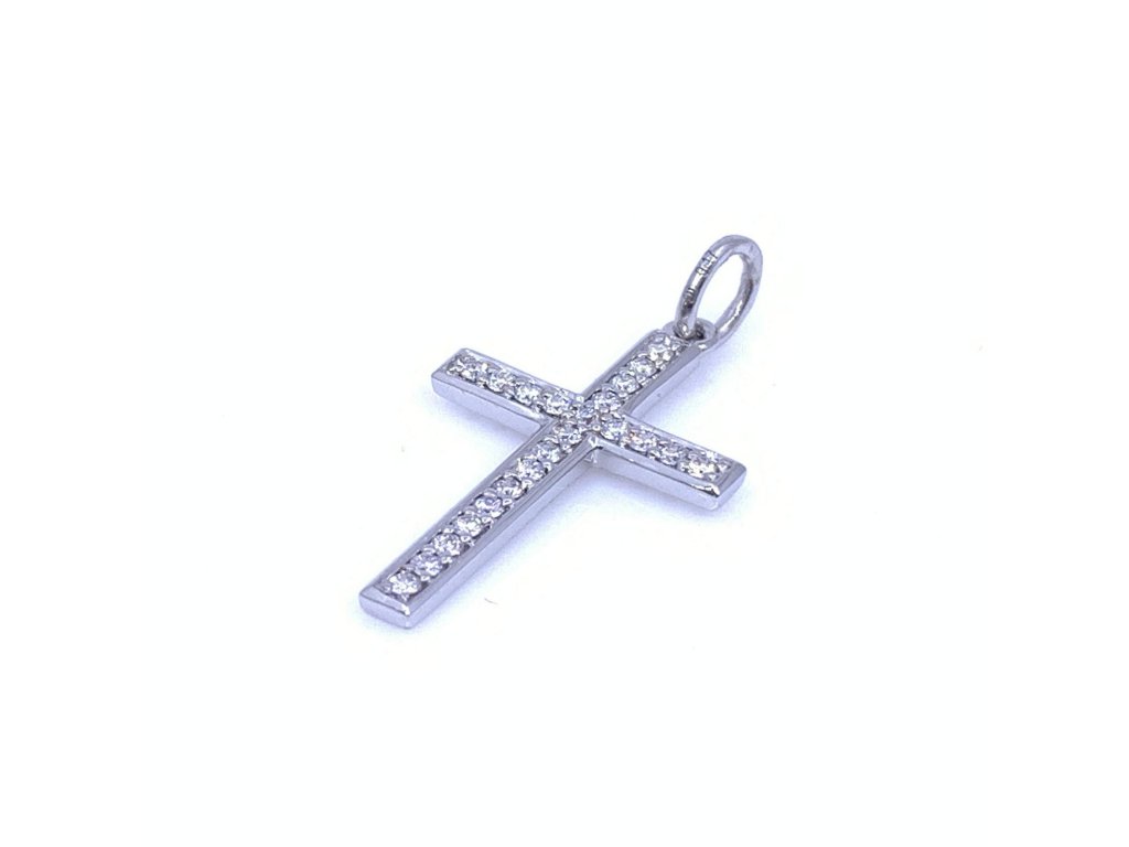 Nádherný přívěsek z bílého zlata (585/1000). Má tvar křížku, který je osázený brilianty. Ke každému šperku s briliantem obdržíte certifikát o pravosti kamene. Povrchová úprava rhodiem zajistí šperku vyšší lesk a odolnost. Všechno naše zboží je označeno puncovními značkami uznanými Puncovním úřadem ČR. Specifikace kamene: 22x briliant G/SI 0,17ct.Doplňkové parametry