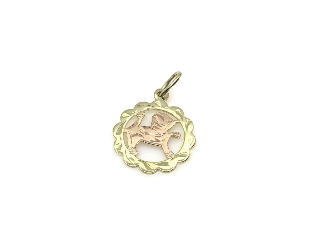 Přívěsek v kombinaci žlutého a růžového zlata (585/1000) potěší ženu i muže. Přívěsek má kulatý tvar, v jehož středu je znamení lva zdobené rytinou. Všechno naše zboží je označeno puncovními značkami uznanými Puncovním úřadem ČR.Doplňkové parametry