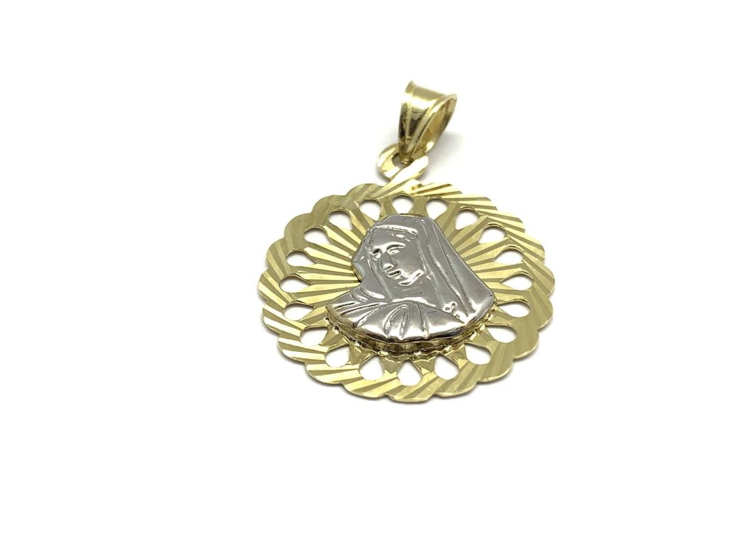 Elegantní dámský přívěsek ze žlutého zlata (585/1000) kulatého tvaru, je jemně rytý a ve svém středě má Madonku z bílého zlata. Všechno naše zboží je označeno puncovními značkami uznanými Puncovním úřadem ČR.Doplňkové parametry