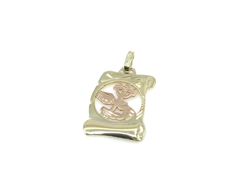 Přívěsek v kombinaci žlutého a růžového zlata (585/1000) potěší ženu i muže. Přívěsek má tvar pergamenu ve znamení vodnáře, který je zdobený rytinou. Všechno naše zboží je označeno puncovními značkami uznanými Puncovním úřadem ČR.Doplňkové parametry