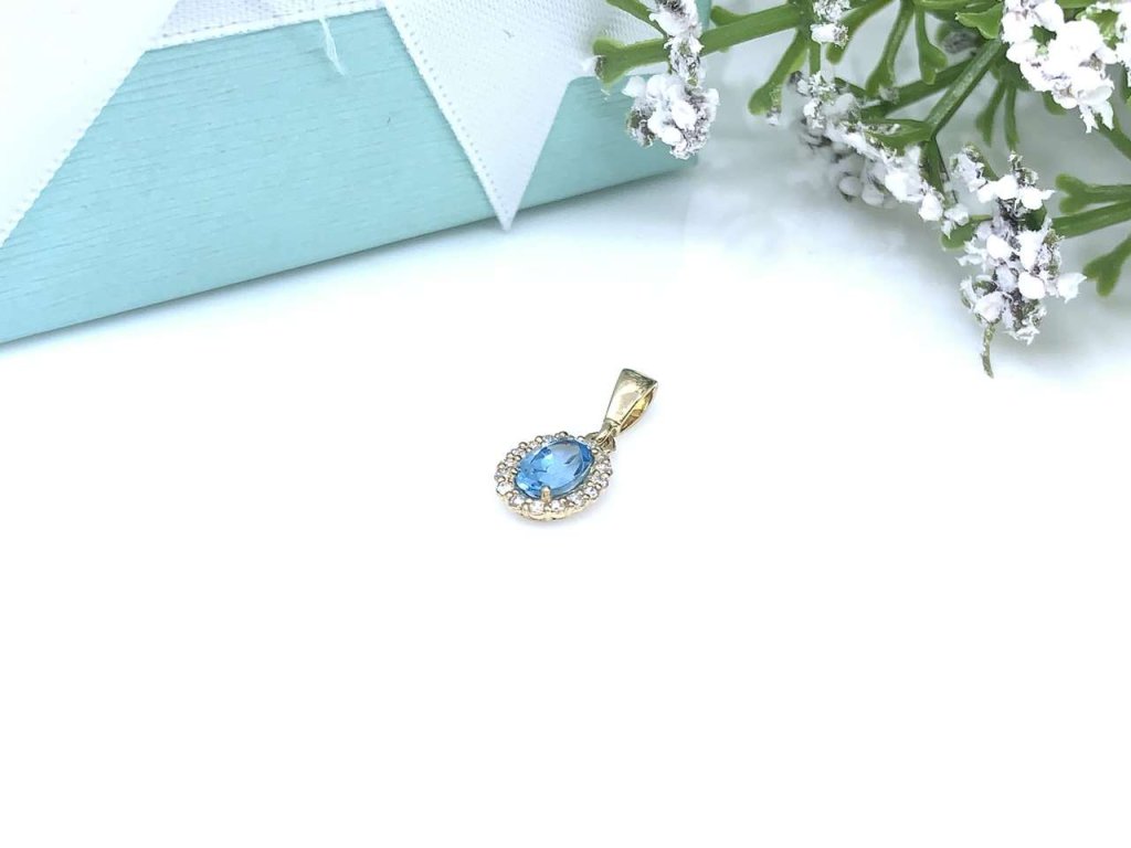 Luxusní dámský přívěsek ze žlutého zlata (585/1000) s nádherným blue topazem s kterým budete zářit. Topaz je lemován řadou zářivých briliantů. Ke každému šperku s briliantem obdržíte certifikát o pravosti kamene. Všechno naše zboží je označeno puncovními značkami uznanými Puncovním úřadem ČR. Specifikace kamene: 1x topaz 6x4mm, 16x briliant G/Si 0,107ctDoplňkové parametry