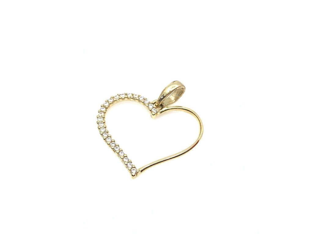 Romantický dámský přívěsek ze žlutého zlata (585/1000) ve tvaru obrysu srdce, které je z poloviny osázené drobnými bílými zirkony. Všechno naše zboží je označeno puncovními značkami uznanými Puncovním úřadem ČR.Doplňkové parametry