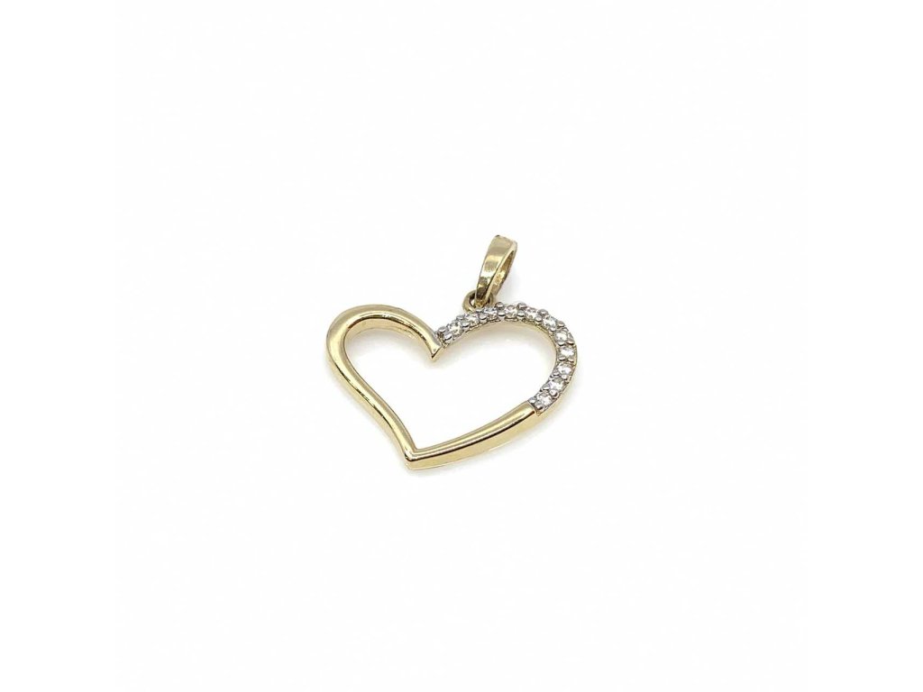 Překrásný dámský přívěsek ze žlutého zlata (585/1000) ve tvaru obrysu srdce, které je zčásti osázené drobnými bílými zirkony. Všechno naše zboží je označeno puncovními značkami uznanými Puncovním úřadem ČR.Doplňkové parametry