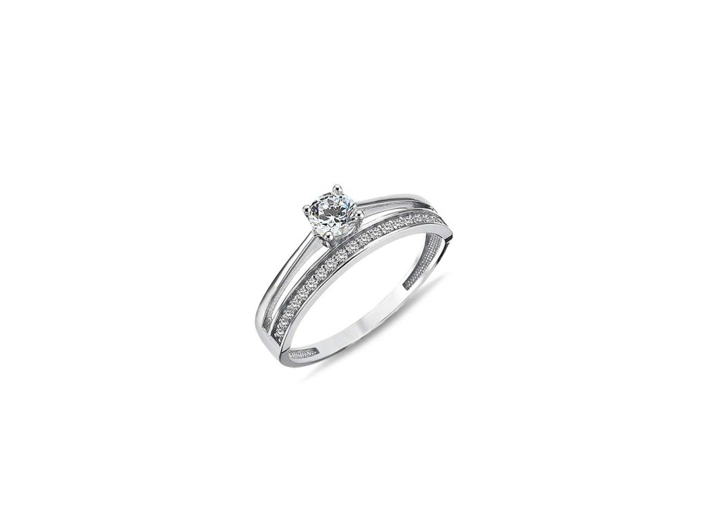 Luxusní dámský prsten z bílého zlata (585/1000) Vás zaujme svojí netradiční ozdobou. Prsten má v horní části rozdvojenou šínu, která je zdobena velkým kamenem o rozměru 4x4mm i malými zirkony. Povrchová úprava rhodiem zajistí šperku lesk a odolnost. Všechno naše zboží je označeno puncovními značkami uznanými Puncovním úřadem ČR. V parametru: rozměry šperku je uvedena velikost ozdoby prstenu.Doplňkové parametry