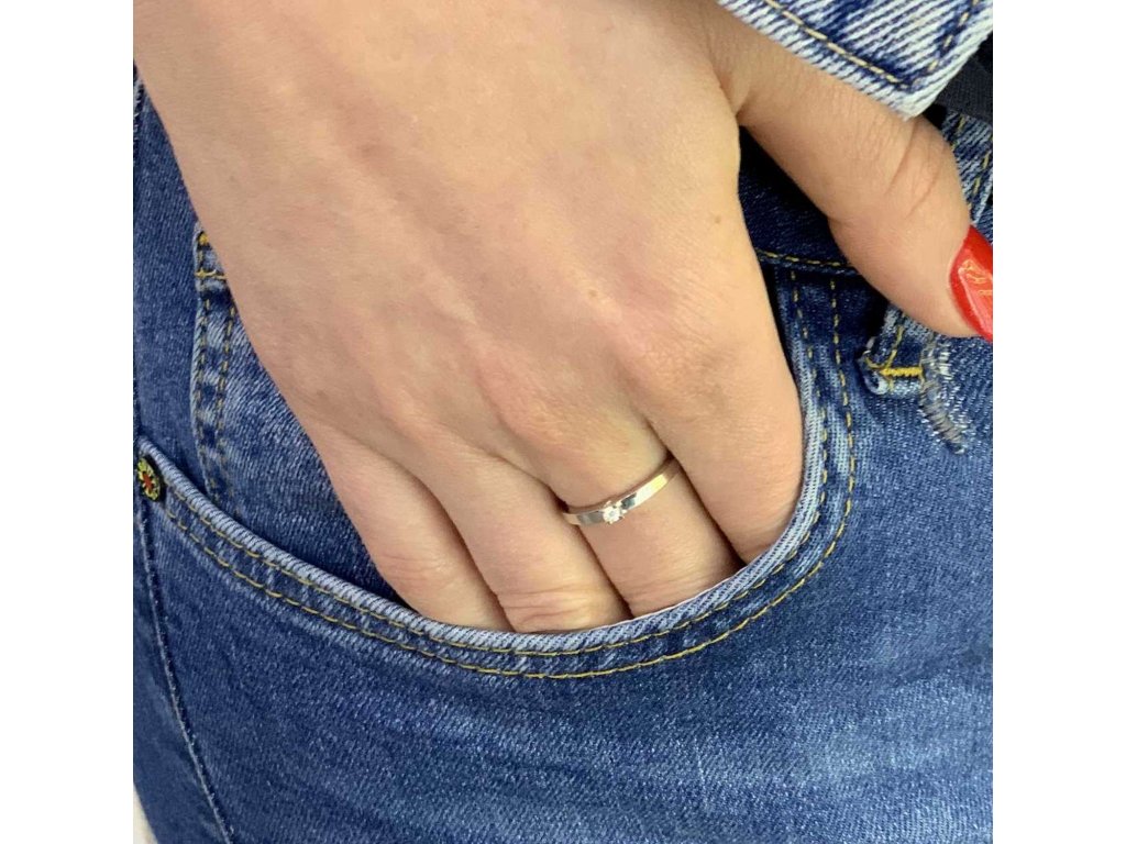 Krásný dámský prsten vyrobený z bílého zlata (585/1000) potěší každou ženu. Prsten má jeden centrální briliant, uchycený v krapničkách ve tvaru čtverce. Prsten je vhodný jako zásnubní. K prstenu je dodáván certifikát pravosti. Povrchová úprava rhodiem zajistí šperku lesk a odolnost. Všechno naše zboží je označeno puncovními značkami uznanými Puncovním úřadem ČR. Specifikace kamene: 1x briliant G/Si 0,05ct. V parametru: rozměry šperku je uvedena velikost ozdoby prstenu.Doplňkové parametry