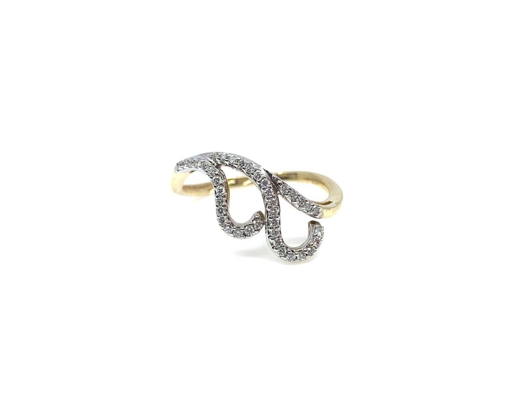 Něžný prstenv kombinaci žlutého a bílého zlata (585/1000). Přitažlivý šperk, který je v zajímavém tvaru zdobený několika, drobnými brilianty. Ke šperku obdržíte certifikát o pravosti kamene. Povrchová úprava rhodiem zajistí šperku lesk a odolnost. Všechno naše zboží je označeno puncovními značkami uznanými Puncovním úřadem ČR. Specifikace kamene: 38x brilianty H/Vs-SI 0,19ct. V parametru: rozměry šperku je uvedena velikost ozdoby prstenu.Doplňkové parametry