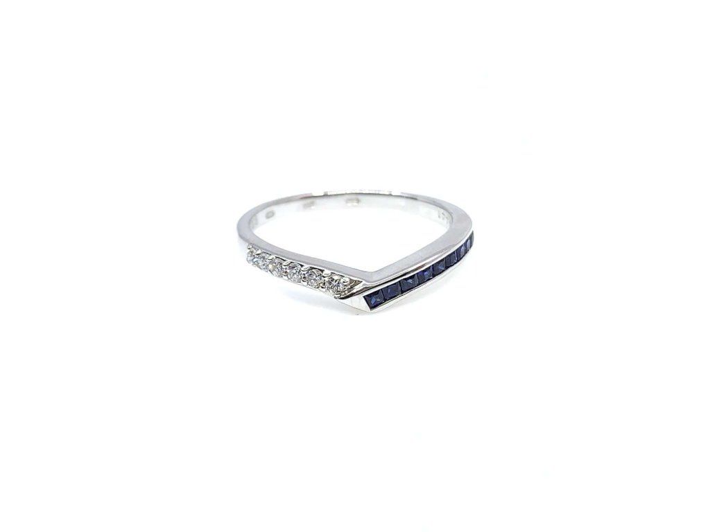 Oslnivý prsten z bílého zlata (585/1000). Šperk, který je zdobený safíry a brilianty. Ke zboží je dodáván certifikát pravosti. Povrchová úprava rhodiem zajistí šperku lesk a odolnost. Všechno naše zboží je označeno puncovními značkami uznanými Puncovním úřadem ČR. Specifikace kamene: 6x briliant H/Vs-SI 0,08ct, 9x safír 0,032ct. V parametru: rozměry šperku je uvedena velikost ozdoby prstenu.Doplňkové parametry