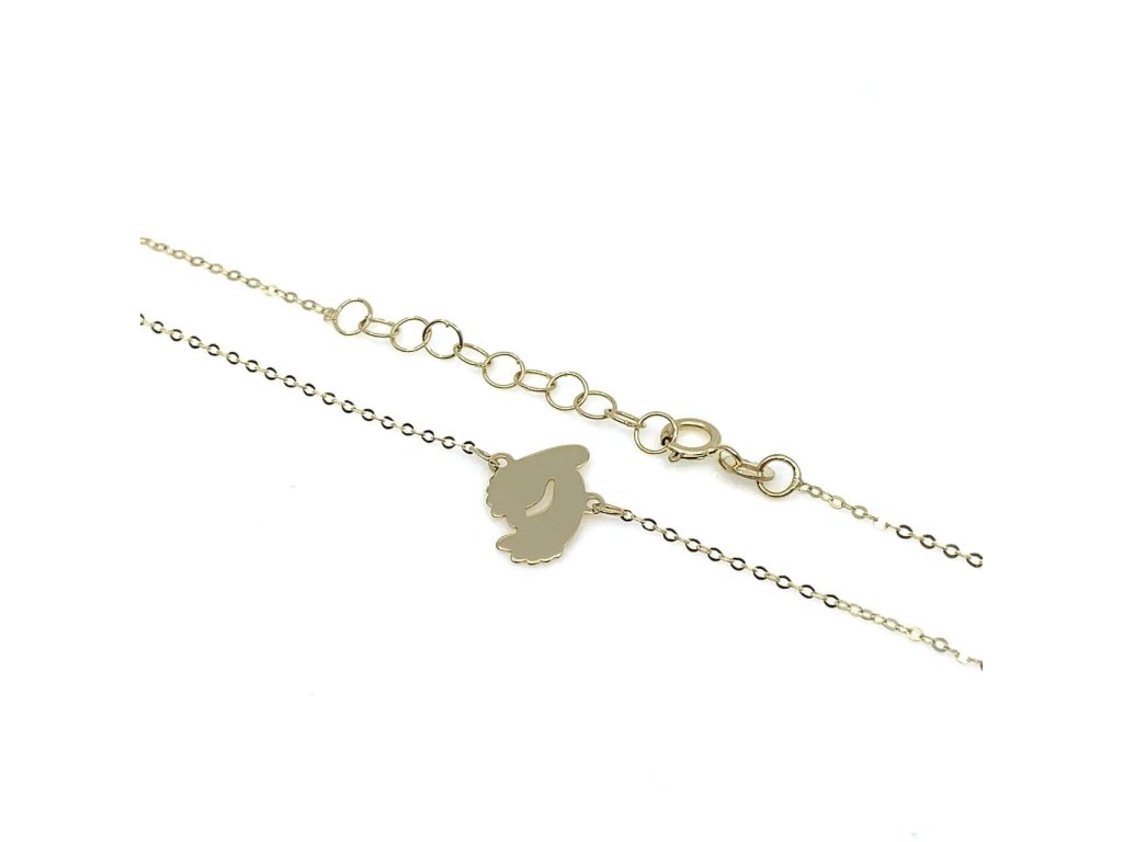 Stylový řetízek s přívěsekem ze žlutého zlata (585/1000) je vhodným dárkem při narození miminka. Přívěsek má tvar dětských nožiček. Řetízek je typu anker. Všechno naše zboží je označeno puncovními značkami uznanými Puncovním úřadem ČRDoplňkové parametry