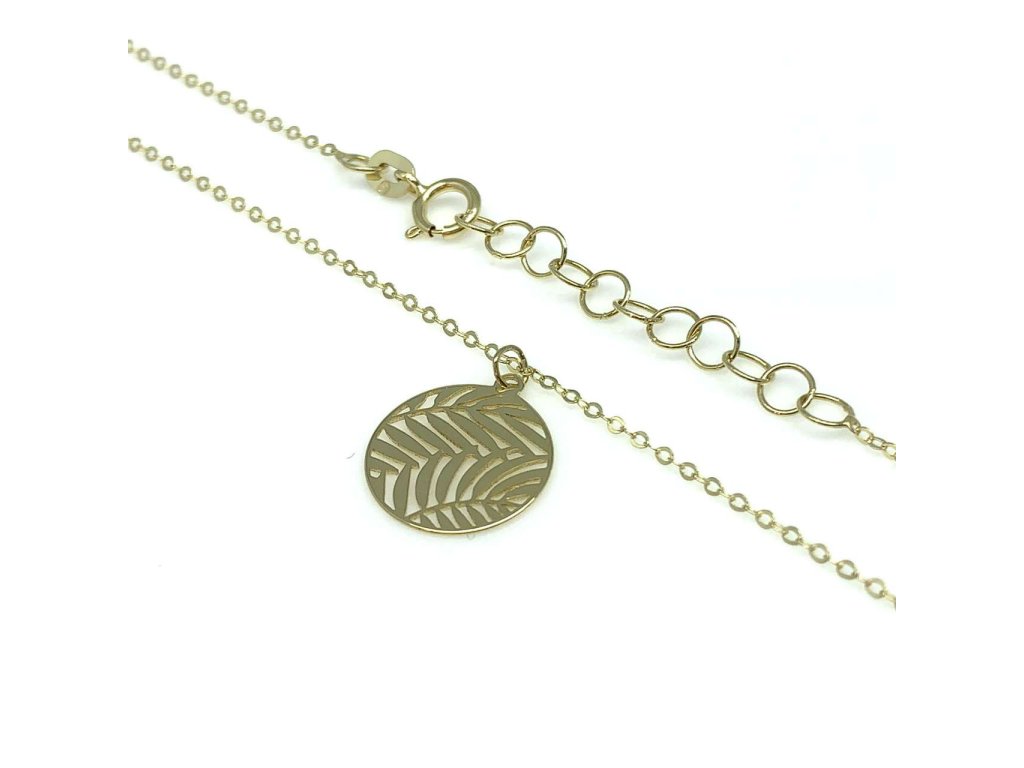 Moderní dámský řetízek s přívěskem ze žlutého zlata (585/1000) potěší každou ženu. Řetízek je typu anker s přívěskem ve tvaru kolečka uvnitř zdobeného listy. Všechno naše zboží je označeno puncovními značkami uznanými Puncovním úřadem ČR.Doplňkové parametry