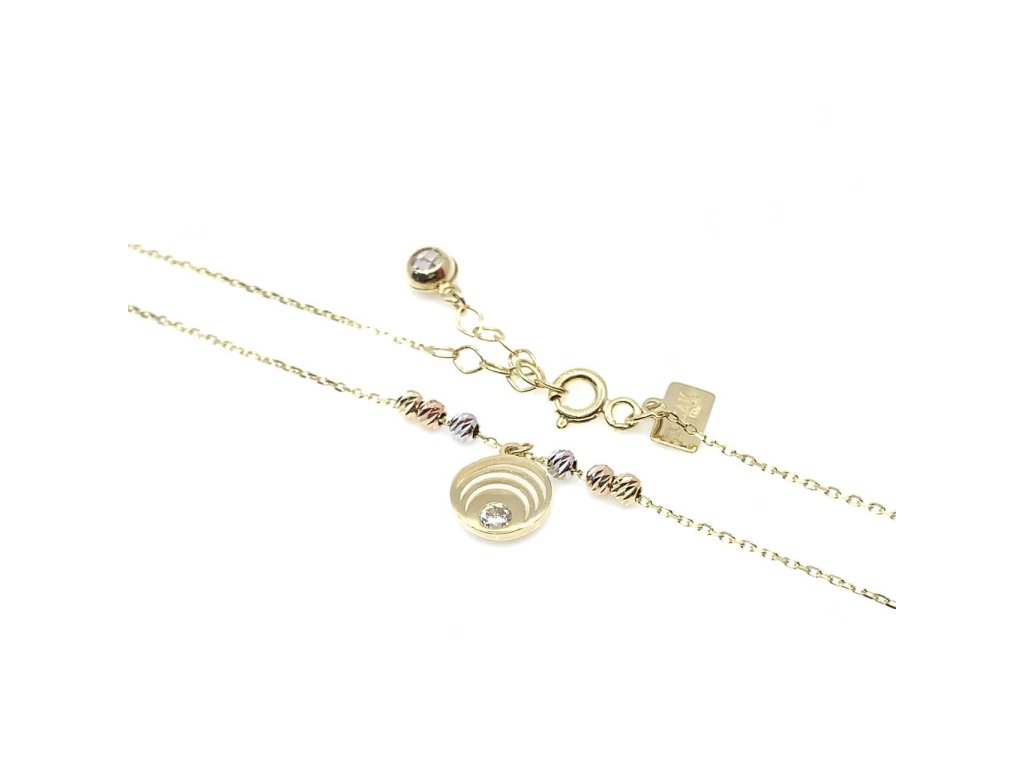 Krásný řetízek s přívěskem ze žlutého zlata (585/1000) okouzlí každou ženu. Přívěsek je ve tvaru kolečka, které je zdobené bílým zirkonem. Řetízek je typu anker. Všechno naše zboží je označeno puncovními značkami uznanými Puncovním úřadem ČR.Doplňkové parametry