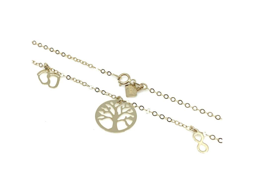 Krásný dámský řetízek s přívěskem ze žlutého zlata (585/1000) okouzlí každou ženu. Řetízek je typu anker. Přívěsky jsou ve tvaru stromu života,nekonečna a dětských nožiček. Všechny naše zlaté šperky jsou opatřeny puncovní značkou uznanou Puncovním úřadem ČR.Doplňkové parametry