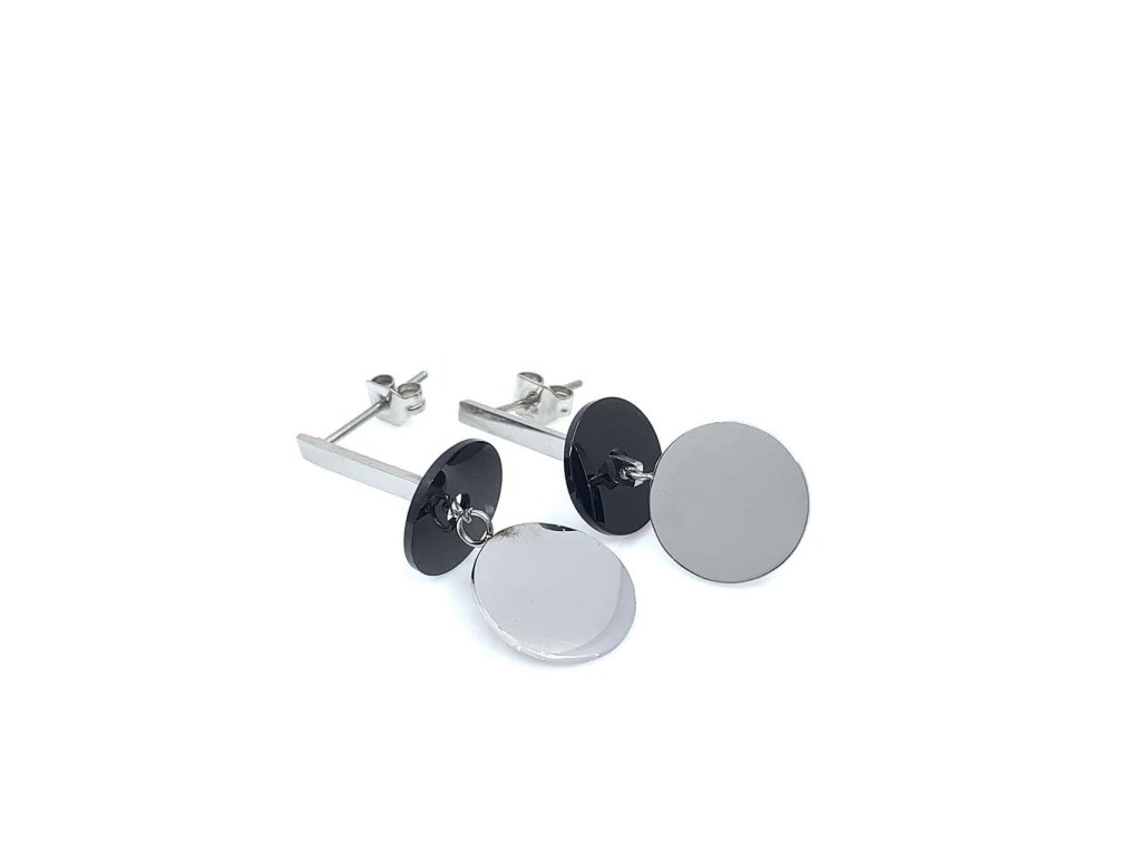Dámské visací náušnice z oceli (316L), které zdobí dvě kolečka. Jedno z nich je černé barvy. Zapínaní je na puzetu. Hezký šperk pro speciální ženu.Doplňkové parametry