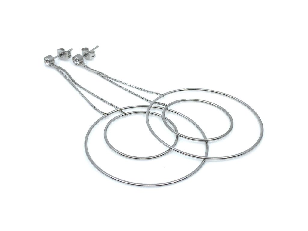 Dámské visací náušnice z oceli (316L) zdobí dvojitý řetízek a na konci dvě hladká kolečka různé velikosti. Zapínání je na puzetu. Krásné náušnice pro výjimečnou ženu.Doplňkové parametry