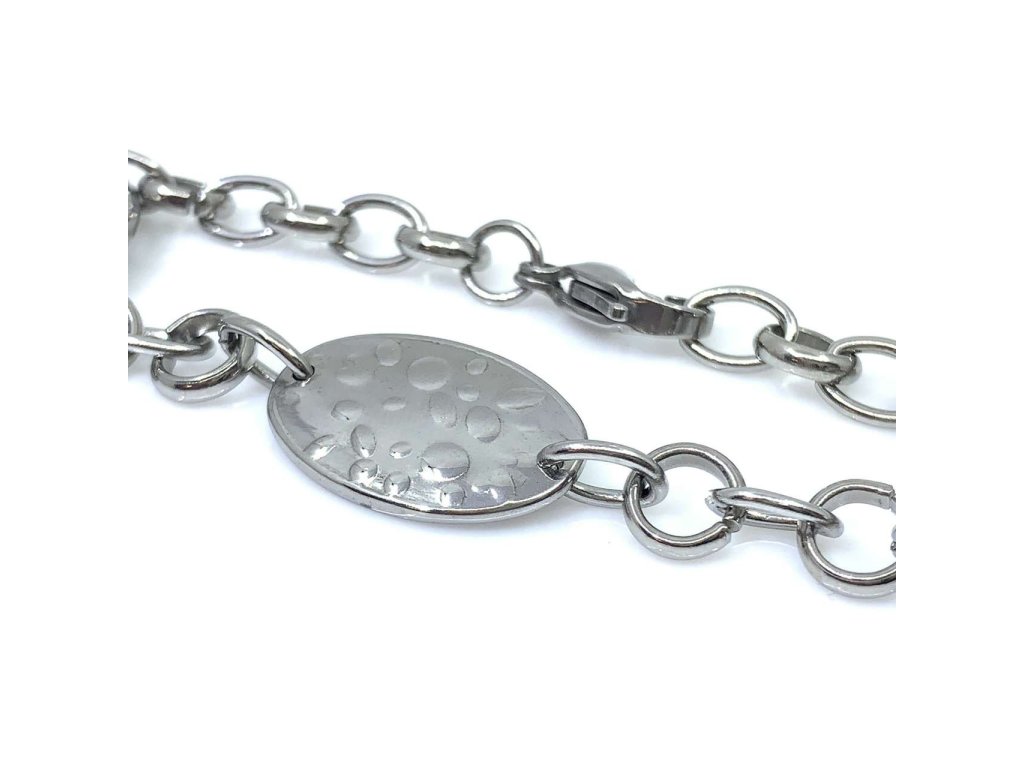 Dámský náramek s přívěsky z oceli (316L). Oválné přívěsky jsou uchyceny v délce náramku. Šperk je v provedení velkého lesku. Krásný šperk pro výjimečnou ženu.Doplňkové parametry