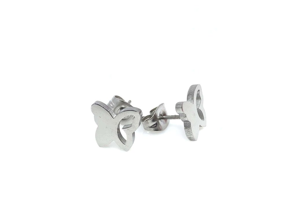 Kouzelné náušnice z oceli (316L). Kouzelné náušnice ve tvaru motýlka, které mají hladký povrch a půlka křídla je prořezávaná. Jejich zapínání je na puzetu.Doplňkové parametry